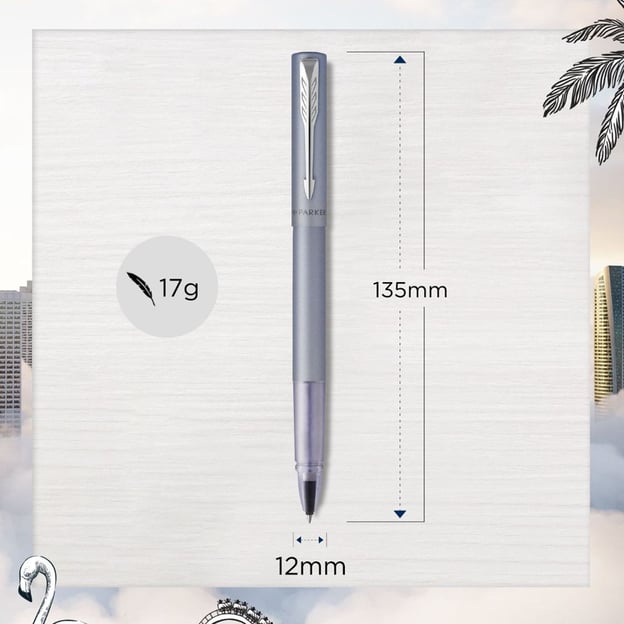 Колекція VECTOR XL пропонує повнорозмірні ручки для художньої та письменницької творчості. Бездоганне поєднання стилю, якості та ціни. Легкий металевий корпус доповнено інноваційною для Parker зоною з прозорого пластику. За класичні риси відповідають фірмовий затискач-стріла та назва бренду на ковпачку. Дизайн виглядає дуже сучасно і напевно підкорить серця молодих та творчих людей. Писати, малювати, робити нотатки - будь-яке заняття буде неймовірно приємним із цією ручкою-ролером.