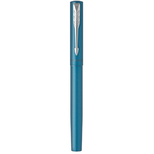 Parker VECTOR XL Metallic Teal CT FP F - перова ручка у дизайні бірюзовий металік з тонким сталевим пером та прозорою грип-секцією. Колекція VECTOR XL пропонує повнорозмірні ручки для художнього та письменницького досвіду. Бездоганне поєднання стилю, якості та ціни. Легкий металевий корпус доповнено інноваційною для Parker зоною з прозорого пластику. За впізнаваність моделі відповідають хромований затискач-стріла та назва бренду на ковпачку. А велике сталеве перо дозволить насолодитись кожною написаною лінією. Дизайн виглядає дуже сучасно і напевно підкорить серця молодих та творчих людей.