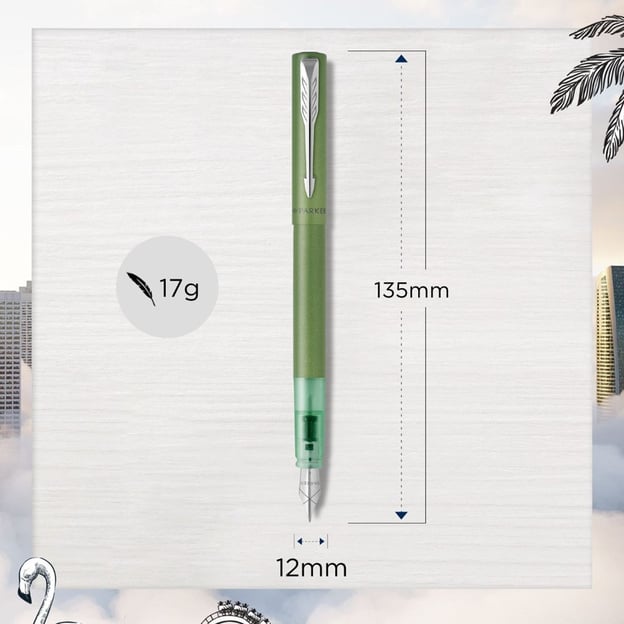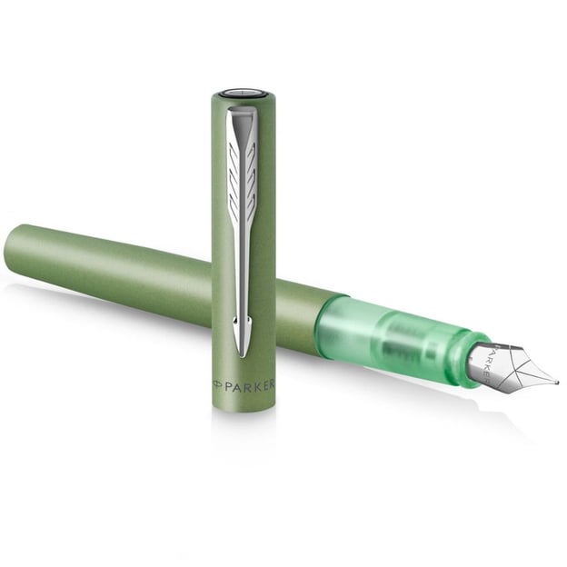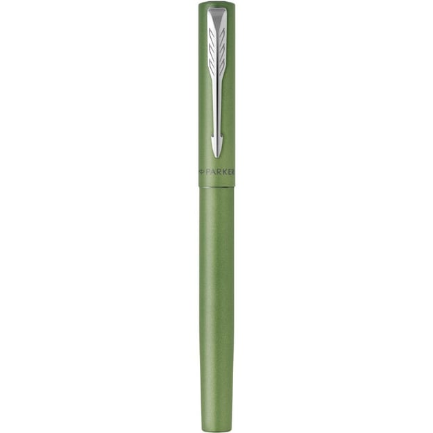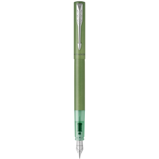 Parker VECTOR XL Metallic Green CT FP F - перова ручка у дизайні зелений металік з тонким сталевим пером та прозорою грип-секцією. Колекція VECTOR XL пропонує повнорозмірні ручки для художнього та письменницького досвіду. Бездоганне поєднання стилю, якості та ціни. Легкий металевий корпус доповнено інноваційною для Parker зоною з прозорого пластику. За впізнаваність моделі відповідають хромований затискач-стріла та назва бренду на ковпачку. А велике сталеве перо дозволить насолодитись кожною написаною лінією. Дизайн виглядає дуже сучасно і напевно підкорить серця молодих та творчих людей.