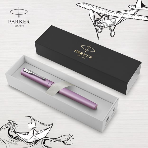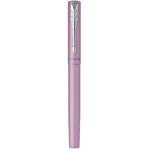 Parker VECTOR XL Metallic Lilac CT FP M - перова ручка у дизайні лілово-рожевий металік з середнім сталевим пером та прозорою грип-секцією. Колекція VECTOR XL пропонує повнорозмірні ручки для художнього та письменницького досвіду. Бездоганне поєднання стилю, якості та ціни. Легкий металевий корпус доповнено інноваційною для Parker зоною з прозорого пластику. За впізнаваність моделі відповідають хромований затискач-стріла та назва бренду на ковпачку. А велике сталеве перо дозволить насолодитись кожною написаною лінією. Дизайн виглядає дуже сучасно і напевно підкорить серця молодих та творчих людей.