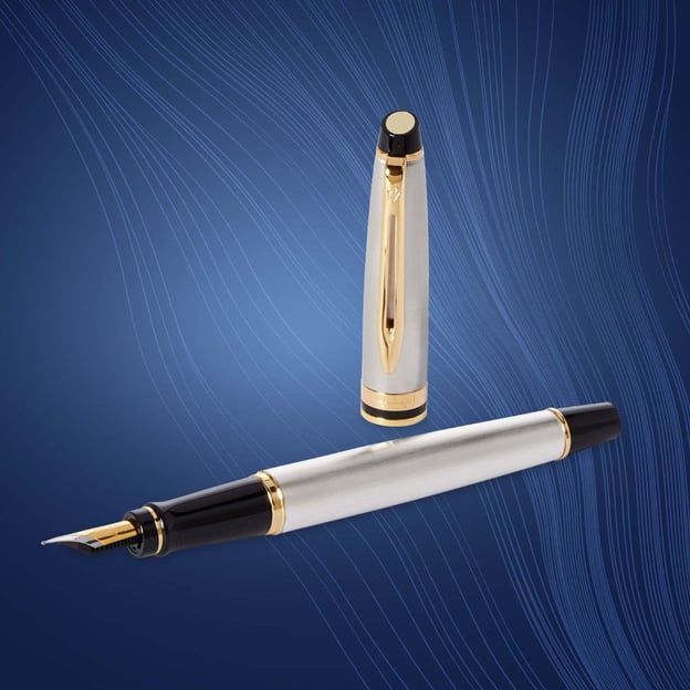 - Перо зі сталі з позолотою та гравіюванням Waterman, розмір F (тонка лінія)