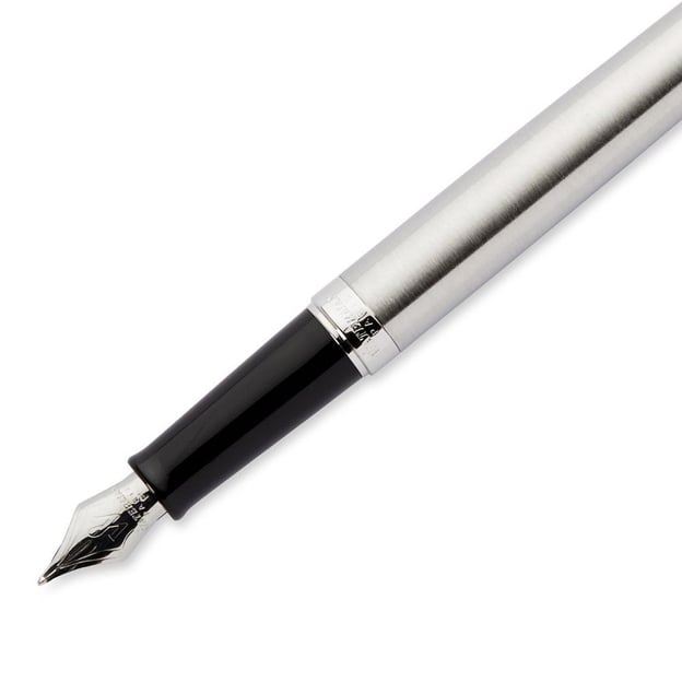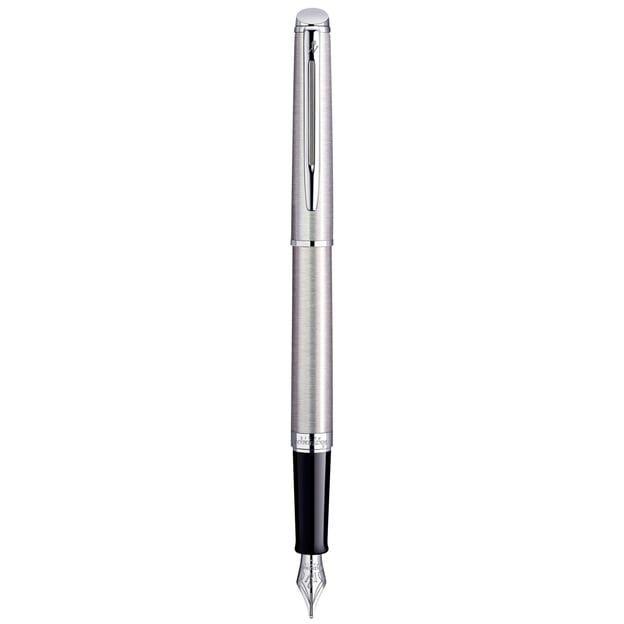 Перова ручка Waterman HEMISPHERE Stainless Steel CT FP F з тонким сталевим пером. Сталевий корпус і ковпачок із паладієвим оздобленням деталей створюють відчуття розкоші, а колекція Hemisphere додає кожному моменту особливого шарму. У дусі Waterman ця лінійка вирізняється позачасовими формами та акцентом на чистоту дизайну. Характерний ковпачок зі скошеним торцем прикрашений гравіюванням із назвою бренду та країною походження, а затискач із логотипом Waterman гармонійно поєднує вузьку форму з широким кільцем, підкреслюючи тонкий силует ручки. Перо з неіржавної сталі розміру F (тонке) оздоблене легендарною літерою W у вигляді петлі — символом майстерності та традицій бренду. У поєднанні з чорнилом Waterman кожне слово перетворюється на приємний досвід взаємодії з елегантним інструментом для письма.