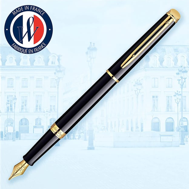 - Майстерно виготовлене сталеве перо з позолотою та емблемою Waterman.
