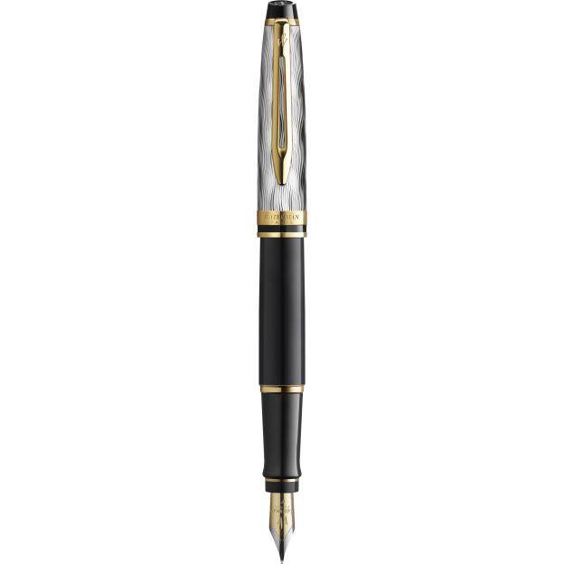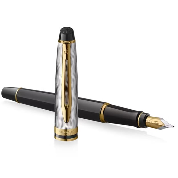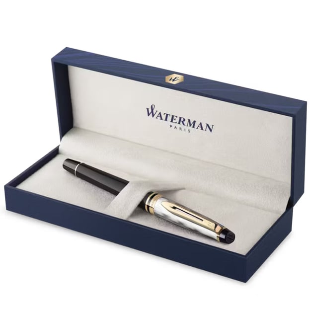 Waterman EXPERT Reflections Of Paris GT FP M - це перова ручка, яка втілює романтику та атмосферу нічного Парижа. Чорний лакований корпус із золотистими деталями нагадує сяйво міських кафе та вуличних ліхтарів, а витончений ковпачок із паладієвим покриттям та хвилястим рельєфним візерунком передає плавну течію Сени. Широке кільце з чорною лаковою смужкою та гравіюванням Waterman Paris завершує образ. Завдяки великому корпусу модель ідеально лежить у чоловічій руці, забезпечуючи комфорт та престиж у кожному штриху.