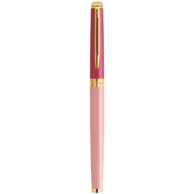 Перова ручка Waterman HEMISPHERE Color Blocking Pink GT FP F з тонким пером із позолоченої сталі. Елегантна перова ручка поєднує два гармонійні відтінки рожевого, створюючи стильний та жіночний образ. Класичний силует Hemisphere з косим торцем ковпачка, фірмовим подвійним затискачем та золотим оздобленням надає виробу неповторної привабливості. Особливу увагу привертає перо з неіржавної сталі, прикрашене позолотою та гравіюванням у вигляді культової петлі «W» – символу майстерності Waterman. Це не лише інструмент для письма, а й витончений аксесуар, що підкреслює індивідуальність.