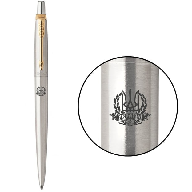 Ручка кулькова Parker JOTTER UKRAINE Stainless Steel GT з лазерним гравіюванням Тризуб з лавровим вінком.