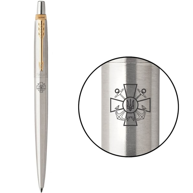 Ручка кулькова Parker JOTTER ARMY Stainless Steel GT з лазерним гравіюванням Емблема Військово-морських сил ЗСУ.