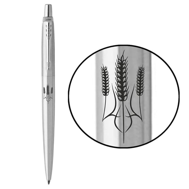 Ручка кулькова Parker JOTTER UKRAINE Stainless Steel CT з лазерним гравіюванням Тризуб із колосків.