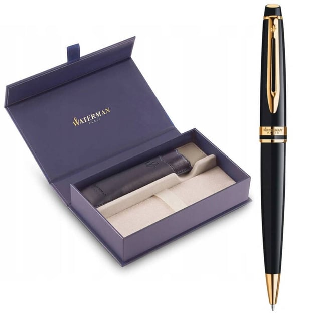 Подарунковий комплект Waterman EXPERT Black GT — це поєднання класики та сучасної елегантності. У набір входить кулькова ручка в глянцево-чорному лакованому корпусі з позолотою 23К та стильний чохол зі штучної шкіри. Витончений дизайн із сигароподібним силуетом робить модель особливо зручною для чоловічої руки, а широке кільце з гравіюванням Waterman Paris та скошений торець ковпачка додають характерного французького шарму.
