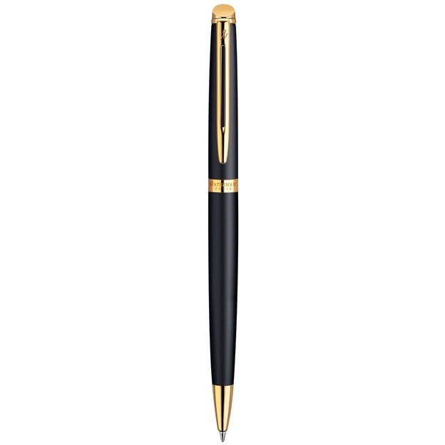 Кулькова ручка Waterman HEMISPHERE Mаtte Black GT BP у чорному матовому дизайні. Корпус із латуні вкритий атласно-матовим чорним покриттям, яке гармонійно поєднується з деталями, оздобленими 23-каратним золотом. Стриманий дизайн із характерним для колекції скошеним торцем ковпачка, гравіюванням Waterman Paris на кільці та логотипом бренду на затискачі створює елегантний і впізнаваний образ. Вузький затискач у поєднанні з широким кільцем підкреслюють витончені пропорції моделі. Ручки Waterman відомі своєю надійністю та довговічністю. Вони забезпечують плавне письмо, чорнило швидко висихає, даруючи свободу для спонтанного самовираження у будь-який момент.