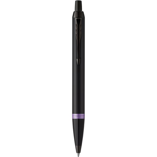 Кулькова ручка Parker IM Professionals Vibrant Rings Amethyst Purple BT у чорному матовому дизайні з фіолетовими елементами.