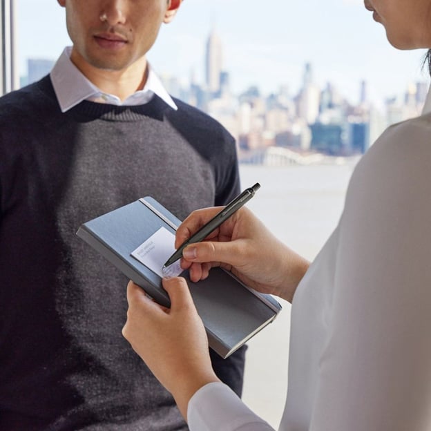 - У наборі кульковий стрижень Parker (запас чорнила розраховано на лінію приблизно 3,5 км).