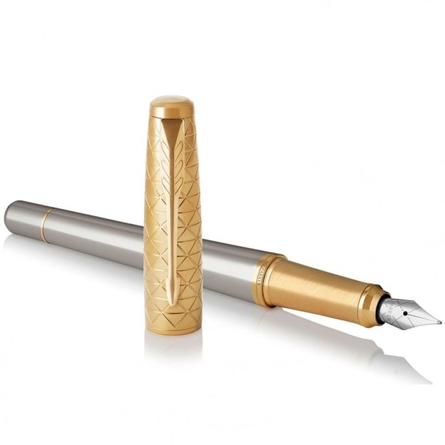 Вишуканий подарунковий набір Parker 32 311b24, що складається з перової ручки URBAN Premium Aureate Powder GT та чорного чохла для ручки у подарунковій коробці. Ручка-перо Parker з тонким сталевим пером із преміальної лінійки колекції Urban Premium 2016 року. Статусний письмовий інструмент у нетривіальному двоколірному дизайні, що поєднує кольори пудрового срібла та золота. Чудовий подарунок для шанувальників видатної якості ручок Parker.