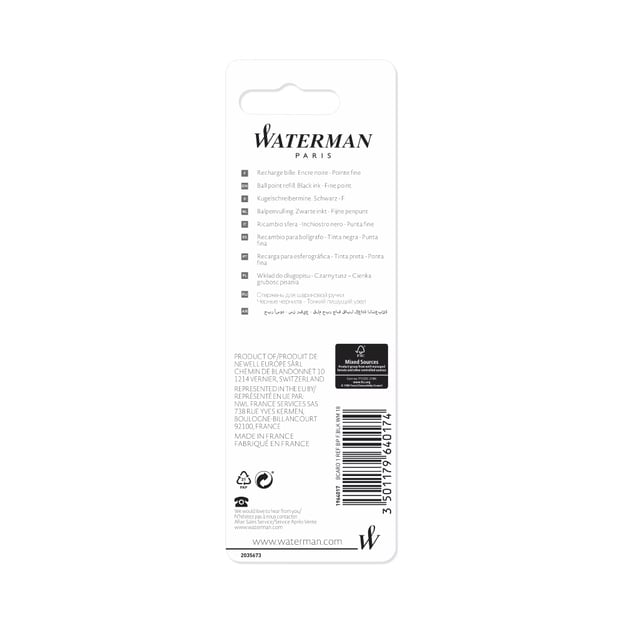 Стрижень Waterman кульковий чорний М (у блістері)