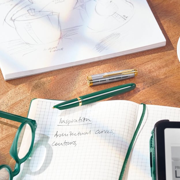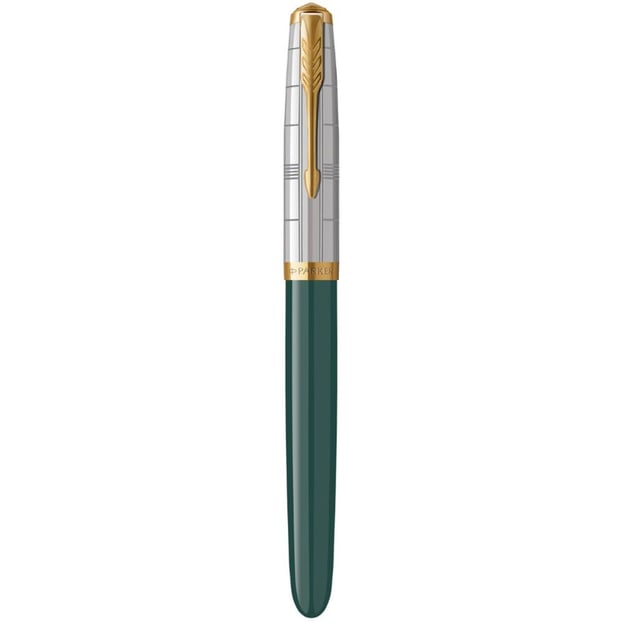 Parker PARKER 51 Premium Forest Green GT FP F - ручка перова із закритим пером з позолоченої сталі, натхненна класичним дизайном 1940-х років і доповнена сучасними елементами. Виконана із міцної акрилової смоли насиченого темно-зеленого кольору з глибокими природними відтінками. Цей колір символізує стабільність, спокій і впевненість, що робить ручку чудовим вибором для тих, хто цінує стриману елегантність. Гладка поверхня корпусу приємна на дотик, а її довговічність гарантує, що ручка залишиться у відмінному стані на довгі роки. Ковпачок виконаний з неіржавної сталі і прикрашений вишуканим гравіюванням, натхненним геометрією сучасного дизайну. Фірмовий позолочений кліп у формі стріли та кільце із гравіюванням бренду, додають моделі особливої витонченості та статусу.