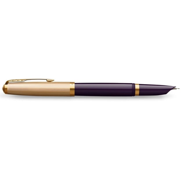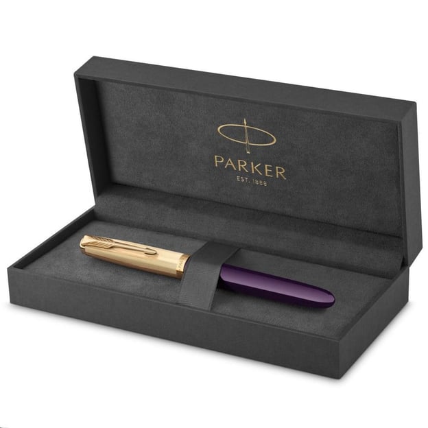 Перова ручка Паркер PARKER 51 Deluxe Plum GT FP18 F із закритим пером із 18-каратного золота - це оновлена модель, що зберігає класичний дух оригіналу, але водночас вона вдосконалена, поєднуючи традиційну майстерність із сучасними технологіями. Ручка зібрана вручну з увагою до всіх деталей, а її обтікаєма форма і унікальне перо роблять її по-справжньому видатним аксесуаром. Корпус ручки виконаний із міцної акрилової смоли в насиченому сливовому відтінку, що надає виробу особливої елегантності. Золоте оздоблення на кільці та ковпачку з 18-каратного золота підкреслює преміальність моделі. Дизайн цієї ручки - пряме продовження культової лінійки Parker 51, вперше представленої в 1941 році, але з безліччю сучасних покращень, що робить її ідеальним вибором для тих, хто цінує якість та інновації. Це не просто письмовий інструмент, а справжній стильний аксесуар, який стане чудовим подарунком і надійним супутником в особливих моментах життя.