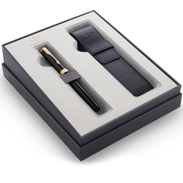 Подарунковий набір Parker SONNET Black Lacquer GT FP M (перова ручка та чохол)