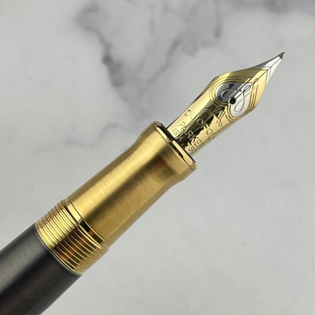- Двоколірне перо із 18-каратного золота з частковим родієвим покриттям.