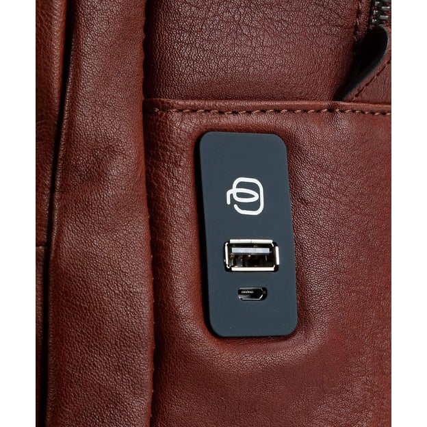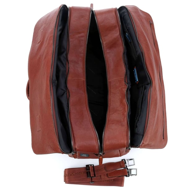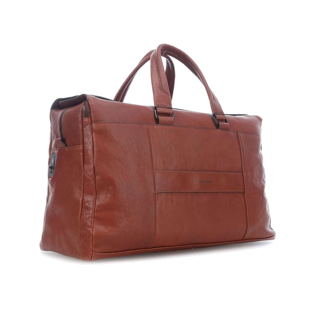 Piquadro BAGMOTIC/Tobacco BV4342B3BM_CU (тютюновий відтінок) - шкіряна дорожня сумка італійського бренду Piquadro. Має одне велике основне відділення, куди легко помістяться ваші речі, а також ще два відділення, одне з яких призначене для 15 дюймового ноутбука і планшета, а друге відділення- органайзер. На передній частині дорожньої сумки розташовані кишені з упорядкованим місцем для письмового приладдя, навушників, телефона та інших речей, які приємно мати під рукою під час поїздки. На бічній стороні сумки розташований роз'єм USB/micro USB для підзарядки ваших гаджетів. У комплекті є наплічний ремінь. Сумку можна прикріпити на висувну ручку валізи. Дуже функціональний варіант преміальної дорожньої сумки для бізнес відряджень, від якого будуть у захваті чоловіки і жінки.