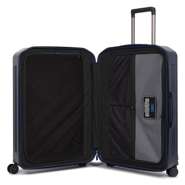 Piquadro PQ LIGHT/Matt Blue M Середня (46 x 69 x 27 см / 60 л / синя) - стильна полікарбонатна валіза середнього розміру в синьому матовому дизайні з TSA замком. Найпопулярніший розмір, легка вага та висока якість роблять її ідеальною для тижневих поїздок. Колекція PQ Light представляє дорожні моделі в найрізноманітніших кольорах. Корпус з ударостійкого і одночасно легкого полікарбонату. Він витримує сильні удари, падіння та перепади температур. Матова ребриста поверхня протистоїть появі подряпин. Двокамерний простір забезпечить практичне пакування речей. Вбудований кодовий TSA-замок надійно захищає багаж від злому. 4-колісна система плавно обертається на 360 градусів, забезпечуючи легкий хід та стійкість у вертикальному положенні.