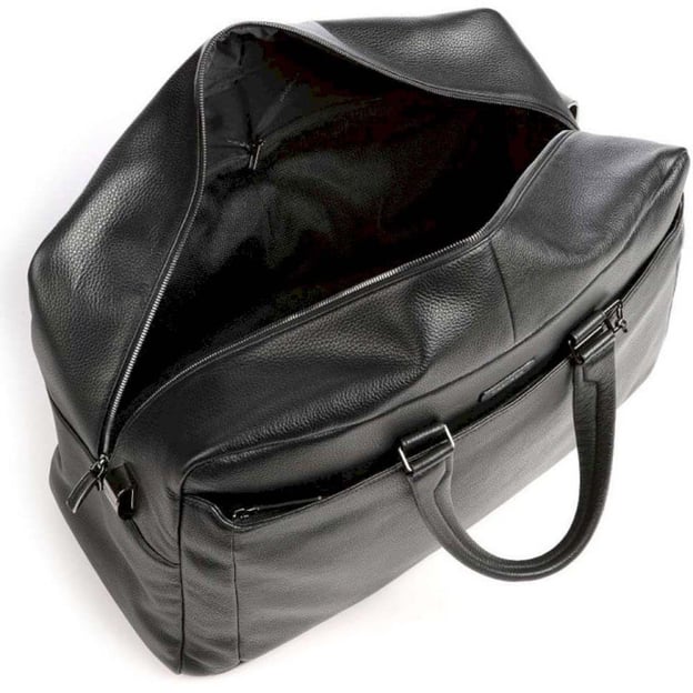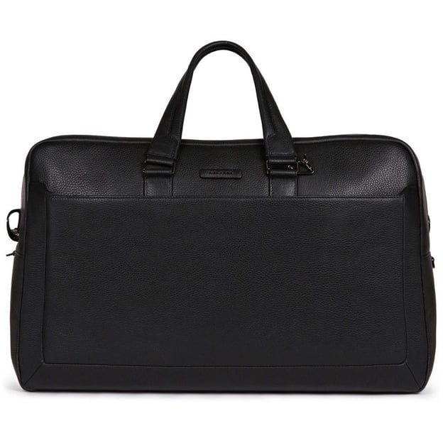 Piquadro Modus Restyling (MOS) Black BV5407MOS_N (чорна) - вишукана дорожня сумка Piquadro для коротких подорожей. Сумка з колекції Modus Restyling виготовлена з натуральної шкіри преміальної якості. Модель зі стриманим дизайном в чорному кольорі. Сумка з основним великим відділенням та трьома додатковими внутрішніми кишенями. В комплекті є окремий чохол для взуття. На передній панелі сумки розташована кишеня-органайзер на блискавці, в якій є кишеня для трекера відстеження CONNEQU. Для зручного перенесення сумки є дві міцні ручки та наплічний ремінь. Також сумка кріпиться до ручки валізи, якщо подорож з великою кількістю багажу.