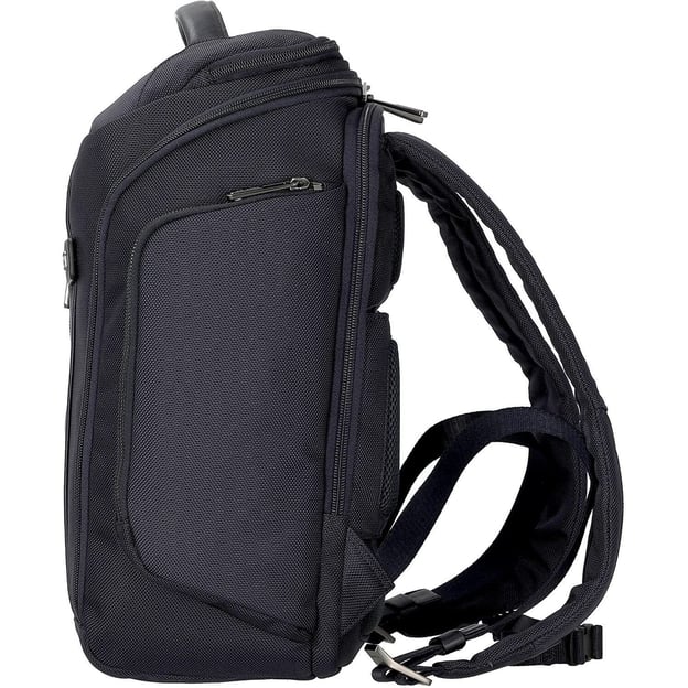 З зовнішнього боку рюкзака розташована вертикальна кишеня на блискавці, а також є верхня кишеня для швидкого доступу до дрібних предметів. В основному відділенні розташована сітчаста кишеня і два компресійні ремені з регульованою застібкою-кліпсою. У другому відсіку розташовані дві м'які кишені для ноутбука до 14 дюймів і iPad, які захищають вашу техніку від подряпин і пошкоджень.