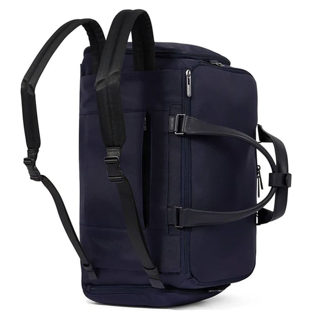 - Для перенесення є дві шкіряні ручки + знімний ремінь на плече + додаткові лямки в потайній кишені.