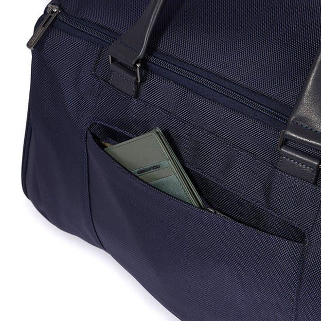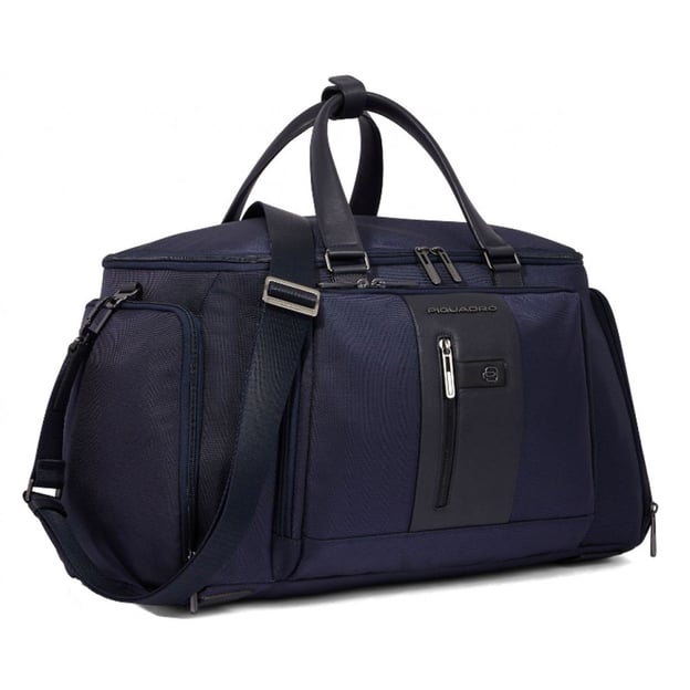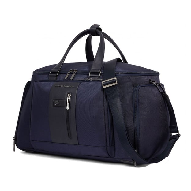 Piquadro Brief 2 (BR2) Blue BV6305BR2_BLU (синя) - функціональна дорожня сумка-рюкзак. Ця дорожня сумка вихідного дня від Piquadro не залишає бажати кращого, міцна, але проста нейлонова тканина доповнена високоякісною шкіряною обробкою. Функціональний інтер'єр складається з численних відділень, відкритих кишень, відділень на блискавці, а також більш спеціальних відділень, таких як: відділення для мобільних телефонів, відсік для електроніки, відсік для ноутбука 15,6 дюймів та планшета, а також відділення для взуття, але це ще не все. Приховане відділення на блискавці, всередині якого є додаткові лямки, а також в комплекті знімний плечовий ремінь, що регулюється по довжині, для додаткового комфорту та змінних варіантів транспортування. Шкіряні деталі в дизайні багажної моделі надають їй неформальної діловитості.