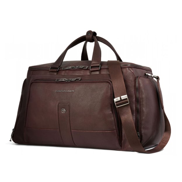 Piquadro Carl (S129) Dark Brown BV6305S129_TM (темно-коричнева) - функціональна дорожня сумка-рюкзак. Ця дорожня сумка вихідного дня від Piquadro не залишає бажати кращого, міцна, але проста нейлонова тканина доповнена високоякісною шкіряною обробкою. Функціональний інтер'єр складається з численних відділень, відкритих кишень, відділень на блискавці, а також більш спеціальних відділень, таких як: відділення для мобільних телефонів, відсік для електроніки, відсік для ноутбука 15,6 дюймів та планшета, а також відділення для взуття, але це ще не все. Приховане відділення на блискавці, всередині якого є додаткові лямки, а також в комплекті знімний плечовий ремінь, що регулюється по довжині, для додаткового комфорту та змінних варіантів транспортування. Шкіряні деталі в дизайні багажної моделі надають їй неформальної діловитості.
