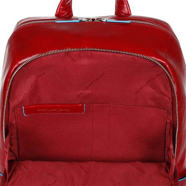 Piquadro BLUE SQUARE (B2) Red CA3214B2_R - елегантний і функціональний рюкзак з телячої шкіри, створений для сучасних людей, що цінують стиль і зручність. Він ідеально підходить для ділових зустрічей, навчання або повсякденного використання, пропонуючи оптимальне рішення для зберігання ноутбука та інших необхідних речей. Червоний колір із блакитним кантом додає аксесуару виразності та виділяє його серед інших. Міцний матеріал забезпечує довговічність і стійкість до зношування протягом тривалого часу. М'які наплічні ремені дають змогу налаштувати рюкзак під індивідуальні уподобання, забезпечуючи комфорт під час тривалого носіння. Ергономічна спинка з системою циркуляції повітря сприяє зниженню навантаження і перегріву на спину.