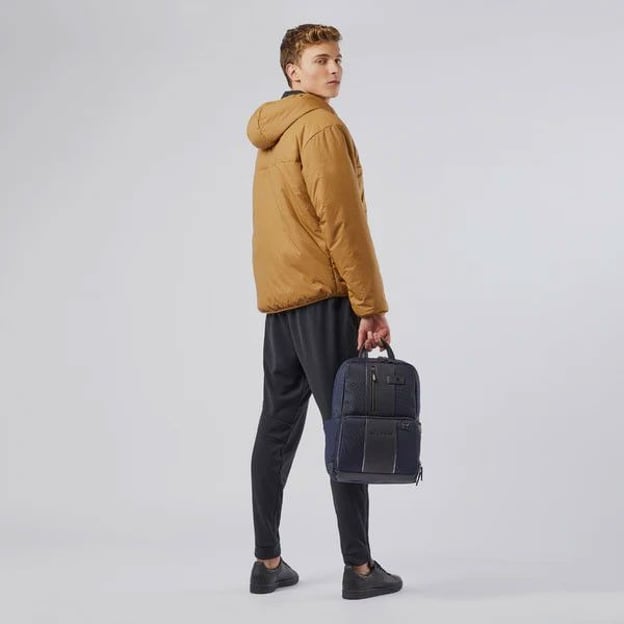 Piquadro Brief 2 (BR2) — смарт-рюкзак із захисними функціями для тих, кому важливо тримати повсякденні речі та техніку впорядковано й під контролем. Поєднання RFID-захисту, USB-роз’єму та LED-підсвічування робить організацію не просто зручною, а й продуманою для щоденного використання.