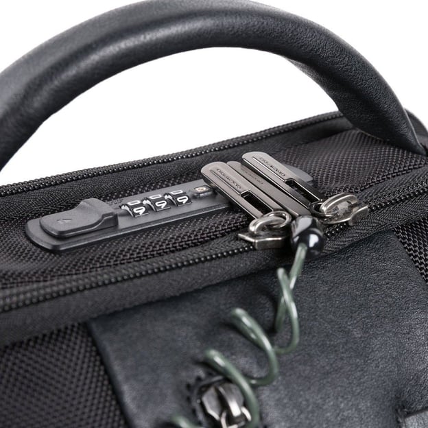 Два основні відділення забезпечують зрозумілу організацію речей без зайвої перевантаженості, а корпус із комбінованого текстилю та шкіри зберігає стриманий вигляд і практичність для щоденного використання. Формат ручної поклажі робить цей смарт-рюкзак із захисними функціями доречним і для коротких поїздок, і для міських переміщень.