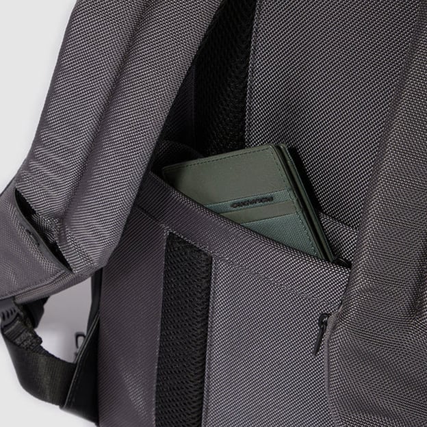 Piquadro BRIEF 2 SPECIAL (BR2S) Grey-Black CA4532BR2S_GRN - рюкзак для ноутбука з текстилю та шкіри, який поєднує в собі стиль та функціональність. Ця модель ідеальна для ділових людей та студентів, які цінують якість та зручність. Рюкзак оснащений водовідштовхувальними блискавками для захисту вмісту від вологи та магнітним тримачем для навушників, що додає зручності при щоденному використанні. М'які, регульовані плечові ремені забезпечують комфортне носіння та рівномірний розподіл ваги, знижуючи навантаження на спину та плечі.