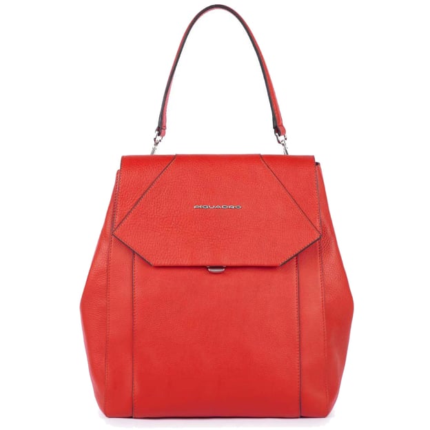 Piquadro MUSE Red CA4630MU_R - рюкзак для ноутбука з золотистою фурнітурою, яка вкрита спеціальним сплавом, що захищає її від потемніння і зміни кольору. Елегантний дизайн червоного кольору із натуральної шкіри, забезпечує стильний зовнішній вигляд і довговічність. Наплічні ремені з регулюванням довжини дають змогу налаштувати їх під індивідуальні переваги. Додатково, ремені можуть бути зафіксовані й використовуватися як зручна наплічна ручка, забезпечуючи гнучкість і комфорт під час носіння.