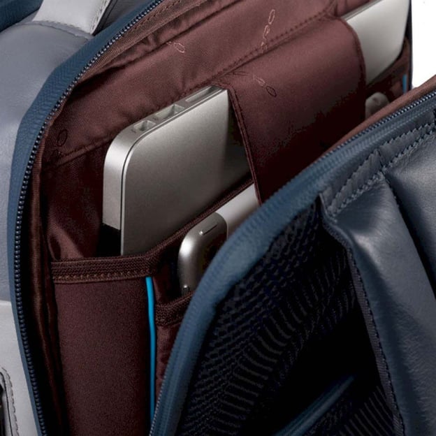 Piquadro URBAN Grey-Bordo CA4818UB00_GRBO - функціональний шкіряний рюкзак, поєднуючий елегантність і практичність, ідеально підходить для ділових зустрічей, навчання і подорожей. Лямки регулюються для максимального комфорту. На одній з них розташована зручна кишеня для зберігання дрібниць, таких як ключі або карти. Вентильована спинка запобігає перегріванню під час тривалого носіння.
