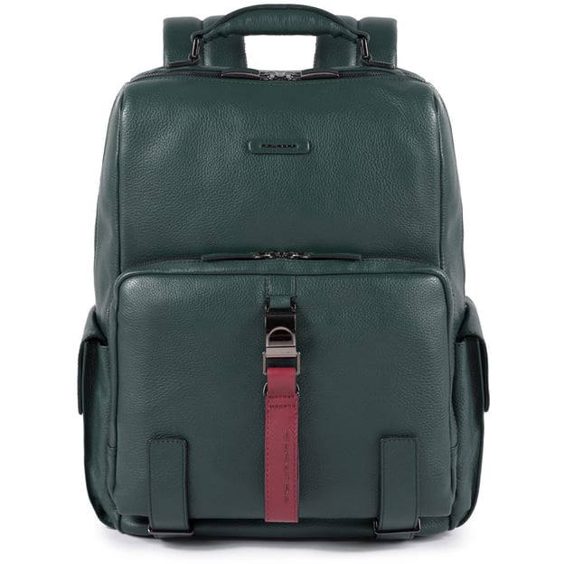 Piquadro MODUS RESTYLING (MOS) Green CA4898MOS_VE - рюкзак для ноутбука в зеленому кольорі, стильне і практичне рішення для ділових людей. Виготовлений із міцної та зносостійкої телячої шкіри, ця модель вирізняється елегантним і солідним дизайном. Регульовані плечові ремені та спинка середньої щільності забезпечують комфорт під час носіння. Додатково рюкзак оснащений RFID-захистом для запобігання зчитуванню даних з карт.