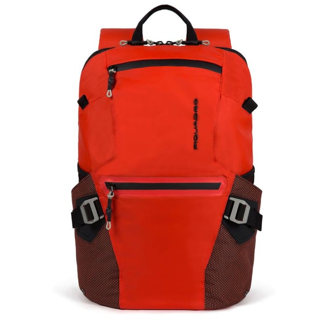 Червоний рюкзак Piquadro PQ-M (PQM) Red CA5495PQM_R призначений для зручного транспортування електронної техніки, документів та особистих речей. Ця модель із еколінійки виготовлена з переробленого поліестеру – легкого та міцного матеріалу, який забезпечує комфорт у повсякденному використанні. Рюкзак Піквадро стане справжнім супутником у повсякденному й активному способі життя. Регульовані наплічні ремені з трьома петлями для кріплення та невеликою кишенею для навушників, додають зручності та функціональності під час використання.