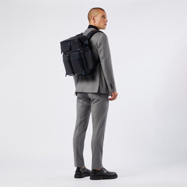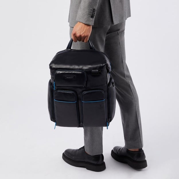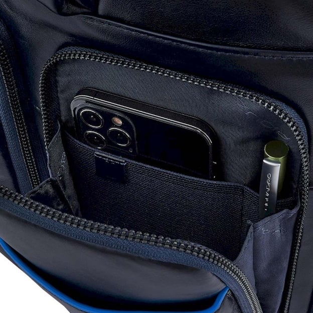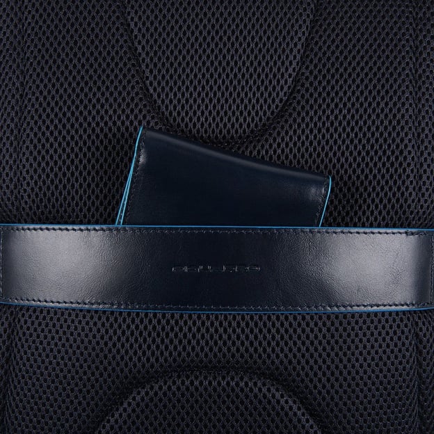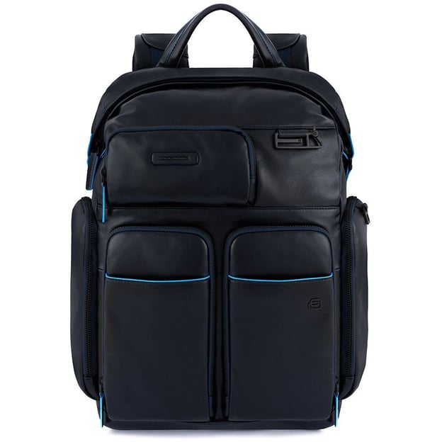 Piquadro B2 REVAMP(B2V) Blue CA5573B2V_BLU - стильний рюкзак з кишенею для ноутбука і знімним дощовиком. Виконаний із натуральної шкіри, цей високоякісний аксесуар привертає увагу своїм сучасним дизайном і ретельно продуманими деталями. Рюкзак є частиною оновленої колекції B2 REVAMP від Piquadro, відомої своєю унікальною контрастною обробкою блакитним кантом.