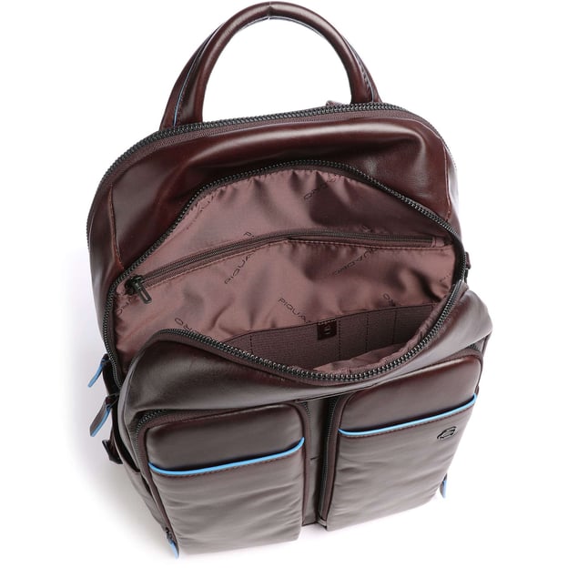 Piquadro B2 REVAMP(B2V) Cognac CA5574B2V_MO - функціональний і стильний рюкзак із натуральної шкіри, який ідеально підходить для ділових людей і студентів. Модель оснащена двома просторими відділеннями на блискавці, одне з яких містить органайзер з кишенями і тримачами для ручок, а також м'яке протиударне відділення для ноутбука до 14 дюймів і планшета iPad. Передні кишені на блискавці надають додатковий простір для зберігання дрібниць, а бічні кишені зручні для розміщення пляшки води і парасольки. Повітропроникна спинка та регульовані наплічні ремені забезпечують комфорт під час тривалого носіння, а ремінь на спинці дає змогу легко кріпити рюкзак на ручці валізи.