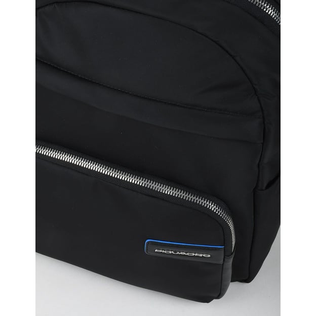 Piquadro Ryan (RY) Black CA5705RY_N - легка і практична модель у класичному чорному кольорі, ідеально підходить для сучасних жінок. Серія Rayan виготовлена з переробленого нейлону і доповнена декоративними елементами із натуральної шкіри з характерними для бренду Піквадро синіми краями. Блакитні алюмінієві застібки-карабіни надають рюкзаку стильного та сучасного вигляду, що користується популярністю серед шанувальників бренду.