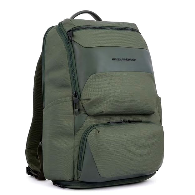 Piquadro Gio (S124) — рюкзак для ноутбука, який тримає форму й виглядає охайно у щоденному ритмі. Основа з переробленого поліестеру підкреслює практичний підхід до матеріалів без зайвого ускладнення.
