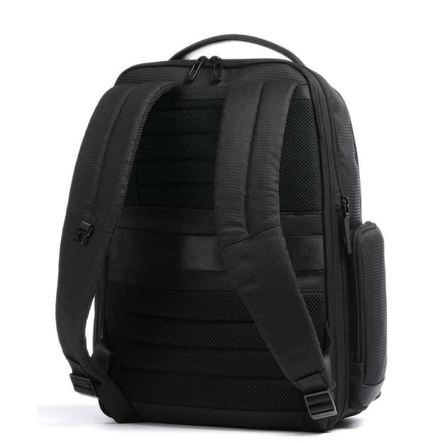 Piquadro Wollem (W129) — рюкзак з продуманим дизайном: поєднання текстилю та шкіри робить модель практичною для щоденного використання і водночас забезпечує акуратний, стриманий вигляд. Таке поєднання матеріалів добре тримає форму й додає відчуття продуманості без зайвої масивності.