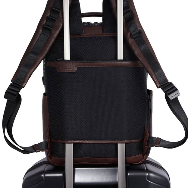 Переднє відділення рюкзака оснащене кишенею на блискавці, органайзером із двома тримачами для ручок і кишенею із застібкою-липучкою для Bluetooth-трекера. Заднє відділення містить спеціальну кишеню для ноутбука до 14 дюймів і планшета з м'якою підкладкою, кишеню на блискавці і шість еластичних петель для кріплення різних аксесуарів. З фронтального боку розташована кишеня на блискавці та карабін, а з правого боку є кріплення для замка та вбудований кодовий замок, що підвищує безпеку та захищає від крадіжок.
