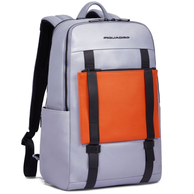 Piquadro DAVID (S130) Grey CA6363S130_GR - шкіряний рюкзак з відділенням для ноутбука та RFID-захистом від несанкціонованого зчитування даних із кредитних карток та інших документів, що містять RFID-чипи. Ця містка модель стане незамінним помічником у повсякденних справах, на роботі та навчанні, завдяки функціональним кишеням. Комфорту у використанні додають регульовані наплічні ремені з петельками для фіксації різноманітних аксесуарів та м'яка спинка з системою вентиляції.