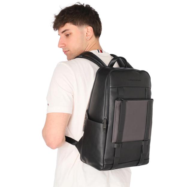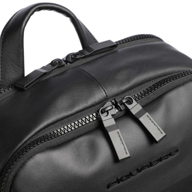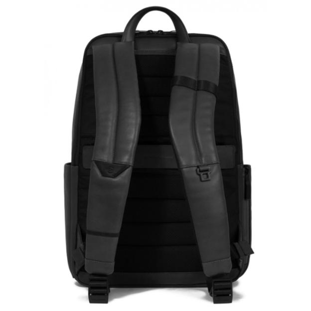 Piquadro DAVID (S130) Black CA6363S130_N - шкіряний рюкзак для ноутбука, документів та особистих речей. Модель виконана в класичному чорному кольорі з пластиковою фурнітурою антрацитового кольору. Цей стильний аксесуар підійде для ділових зустрічей, прогулянок містом і подорожей. Продумані елементи в дизайні рюкзака гарантують зручність і функціональність у будь-яких ситуаціях. Наплічні ремені регулюються по довжині, а також забезпечені петельками для аксесуарів. Спинка із системою вентиляції забезпечує комфортне використання протягом усього дня.