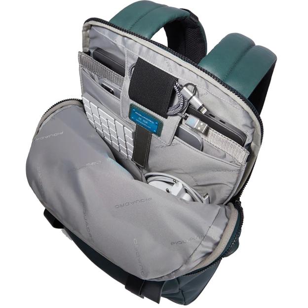 З лицьової частини рюкзака розташована кишеня на блискавці для швидкого доступу до потрібних предметів. Для пляшки води, парасольки та інших дрібниць передбачені бічні кишені відкритого типу. Два просторих відділення мають достатньо місця для організації всіх необхідних речей. Всередині є кишеня для клавіатури та зарядного пристрою, а також два захисні відсіки для ноутбука до 14 дюймів і iPad.