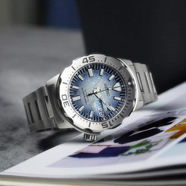 Seiko SRPG57K1 Special Edition - дайверський автоматичний годинник Prospex Monster 42 мм з лапками пінгвіна на циферблаті та запасом ходу до 41 години. Спеціальний випуск Save The Ocean, який натхненний захистом пінгвінів в Антарктиці, як видно на циферблаті. Ця версія 2021 року оснащена сталевим браслетом та розроблена для екстремальних водних видів спорту завдяки водонепроникності до 200 метрів. Циферблат полярно-синього кольору з великими мітками зі світлонакопичувальним покриттям LumiBrite (власний запатентований склад Seiko) покращують читаність при слабкому освітленні та його відсутності.