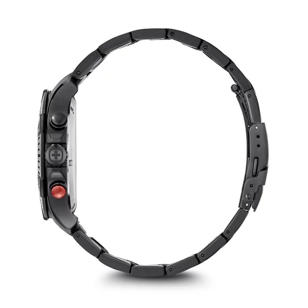 Швейцарський чоловічий годинник-хронограф Wenger SEAFORCE Chrono W01.0643.121 у тотально чорному дизайні. Спортивна розкіш для чоловіків у стилі дайверського годинника. Модель поєднує в собі спортивний стиль і вишукану естетику, що робить їх придатними для будь-якої ситуації - від серфінгу до ділових зустрічей.