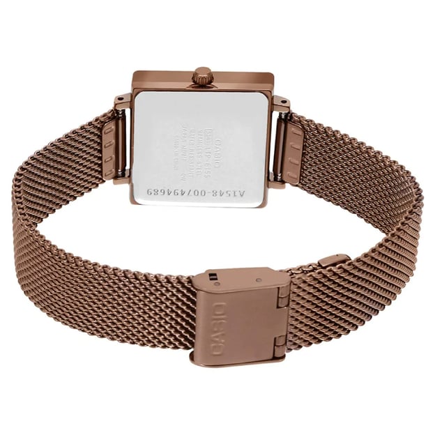 Casio STANDARD Analogue LTP-E155MR-9BDF — жіночий годинник зі стриманим, акуратним дизайном у відтінку рожевого золота. Циферблат у тон корпусу виглядає цілісно й легко поєднується з повсякденним одягом, а квадратна форма додає моделі характеру без зайвої помітності.