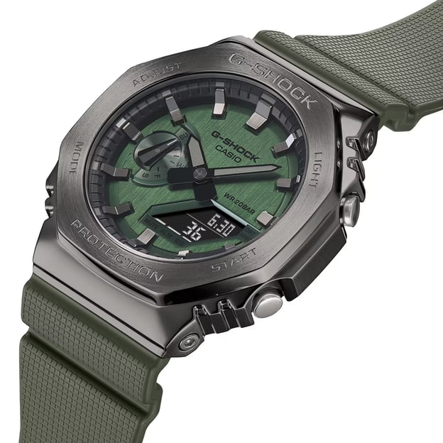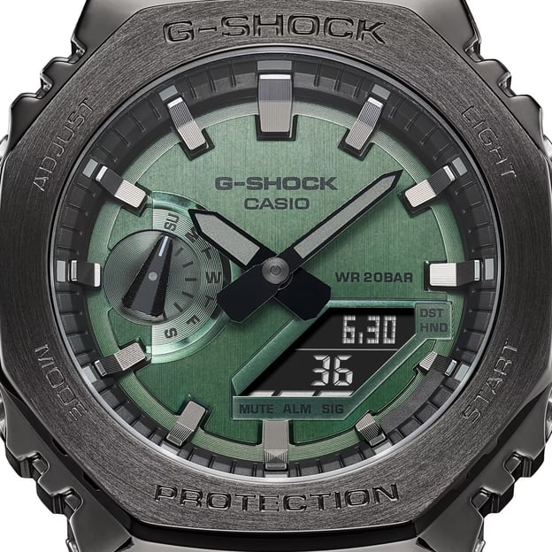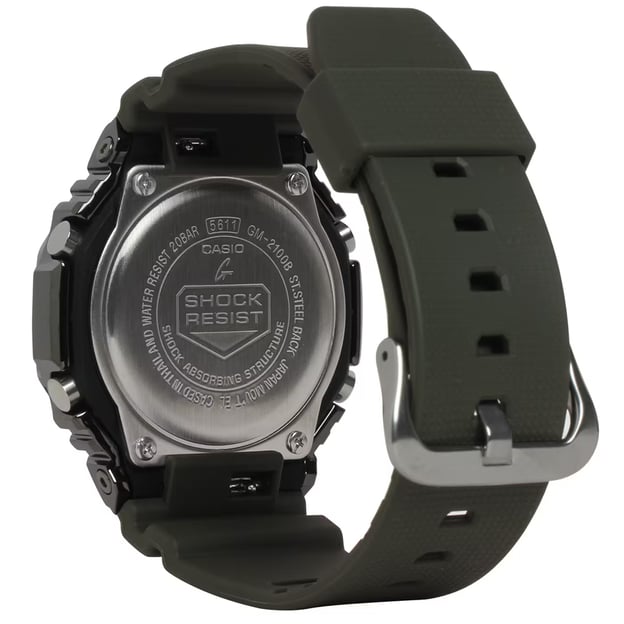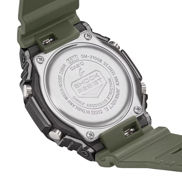 Водо- та ударостійкий годинник Casio GM-2100B-3AER з лінійки G-Steel. Спортивний годинник G-SHOCK з неіржавної сталі, що поєднує стиль, комфорт та функціональність. Повсякденний дизайн відрізняється ретельно деталізованим металевим зовнішнім виглядом та сучасною естетикою зеленого. Металева восьмикутна форма безеля віддає данину класичному стилю, представленому в перших G-SHOCK - DW-5000, що дебютували в 1983 році. Модель GM2100B-3A має водонепроникність 200 метрів та ідеально підходить для занять водними видами спорту. Годинник оснащений японським кварцовим механізмом, який забезпечує точність вимірювання часу. Містить безліч функцій, які підвищують вашу продуктивність у різних повсякденних справах.